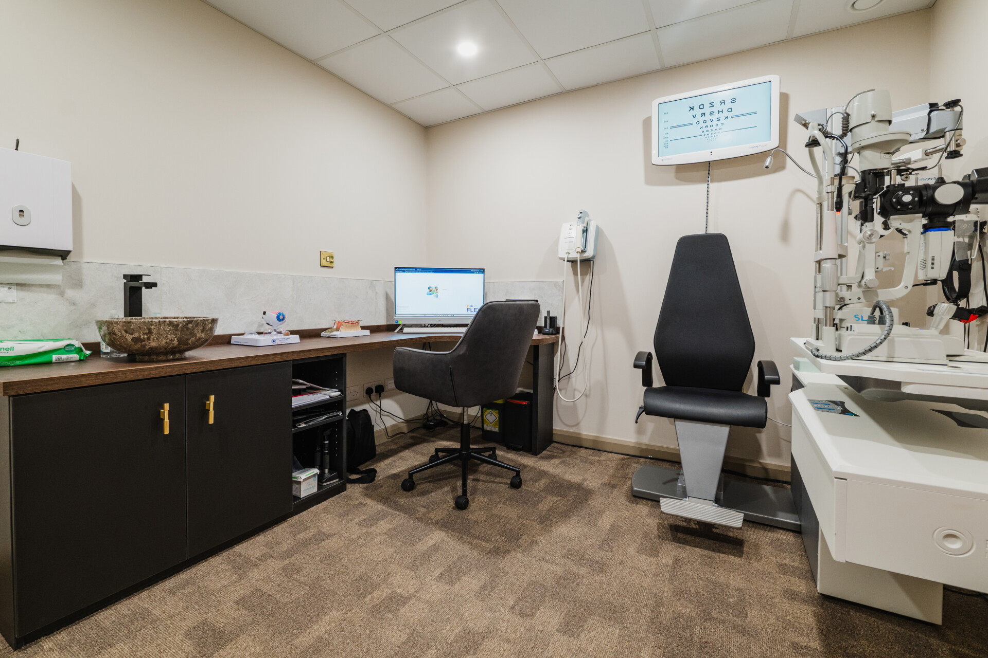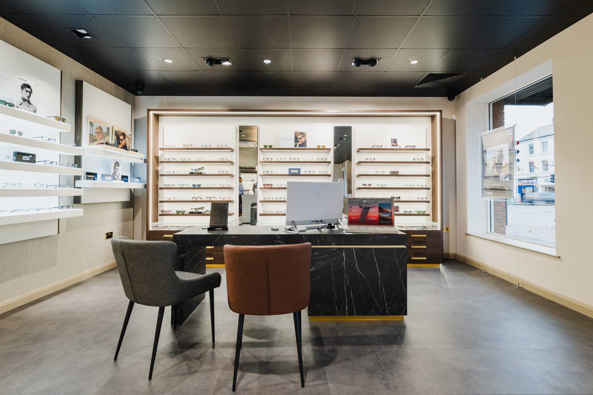 The result is a cohesive, sophisticated scheme that transforms the space into something truly remarkable. This is more than just an opticians; the space also houses audiology and podiatry clinics, creating a multifunctional environment where clients can meet all their healthcare needs in one place.